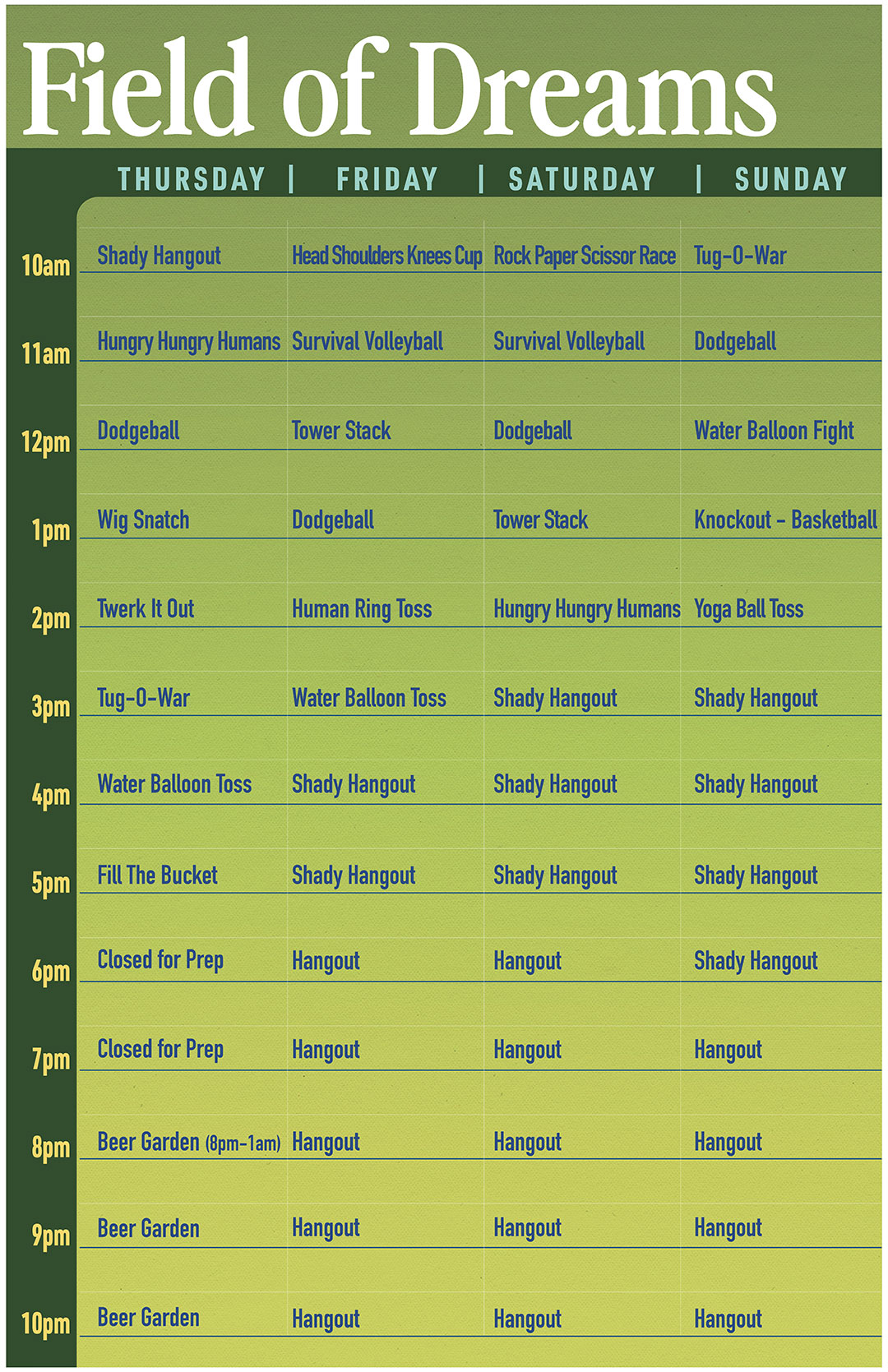 GAME TIME: Unleash your inner athlete at the Field of Dreams, the ultimate playground